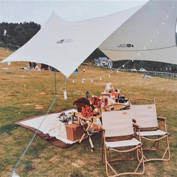 If you don't need to spend the night and take a nap, the practicability of the canopy will be better than that of the tent, and it will be closer to nature. If you use it with the tent, you can also have an outdoor dining game lobby. It is also recommended to choose Oxford cloth, which is more durable and has excellent waterproof and sunscreen performance.